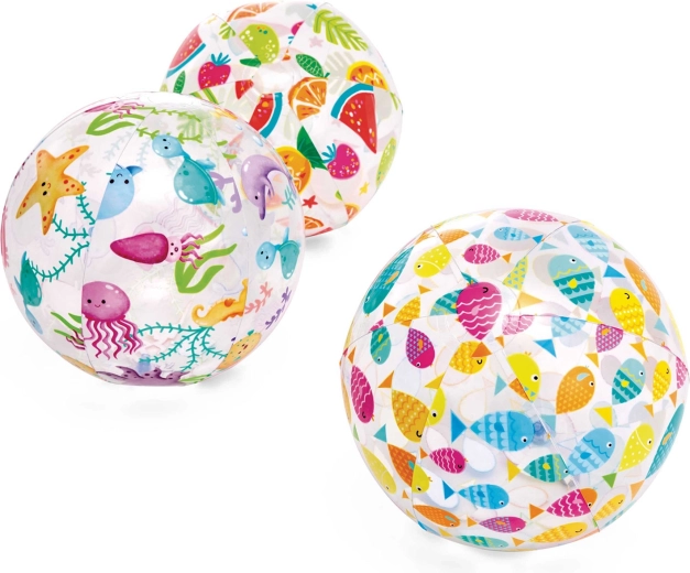 Den oppustelige INTEX-bold med gennemsigtigt design og farverige undervandsmotiver er et fremragende valg til sommerlege ved poolen og på stranden. Den er let at puste op, fylder minimalt når den er tømt for luft, og det robuste materiale klarer leg hver dag.