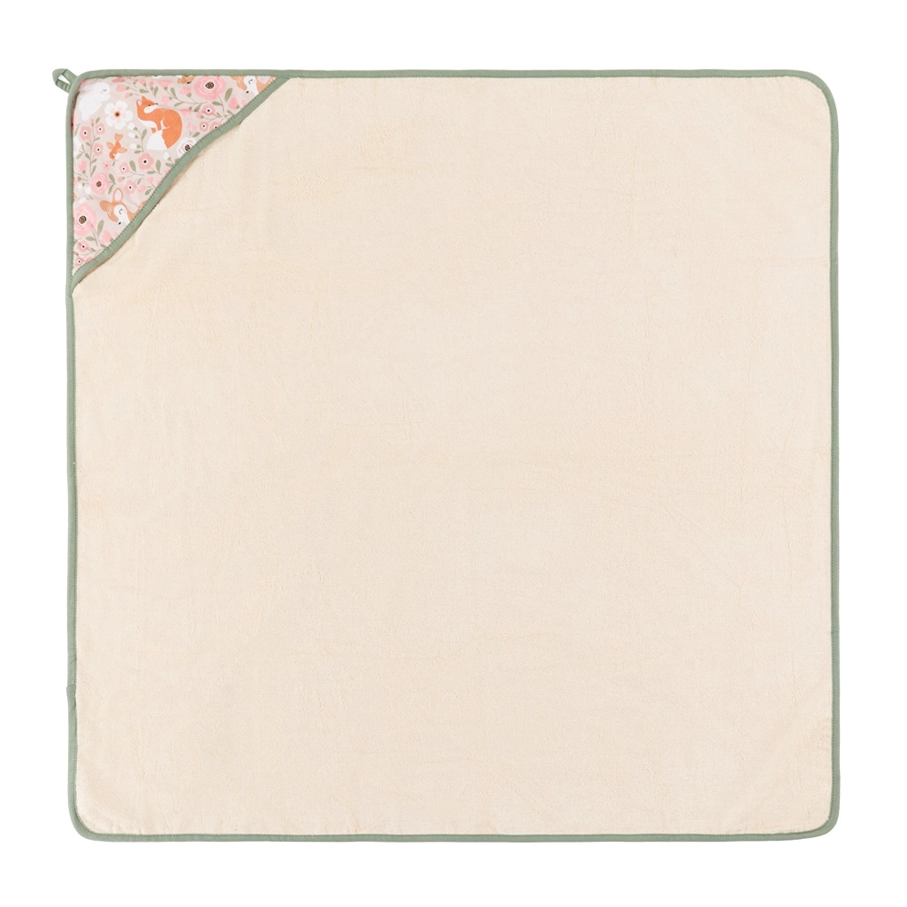 Takket være den kvadratiske form og målene 100 × 100 cm tilpasser det sig nemt nyfødte, spædbørn og tumlinger. Hætten holder hovedet varmt, og ophænget gør det nemt at hænge til hurtig tørring. Den elegante, miljøvenlige emballage af kraftpapir gør desuden håndklædet til en smuk gave til nybagte forældre.