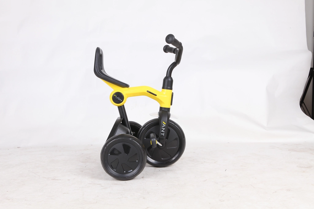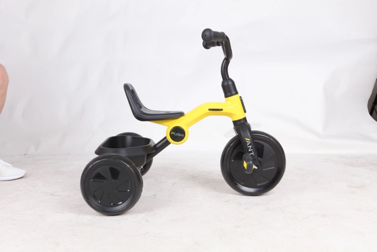 Den lette og holdbare trehjulede Qplay Ant i en stilfuld gul farve er ideel til børn fra 2 til 6 år. Den tilbyder en stærk metalramme, et justerbart sæde, vedligeholdelsesfri EVA-hjul resistente over for punktering og et kompakt, foldbart design med bærehåndtag for nem transport. For sikkerheden sørger en sikkerhedssele, og den praktiske bagkurv rummer legetøj til turen.