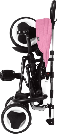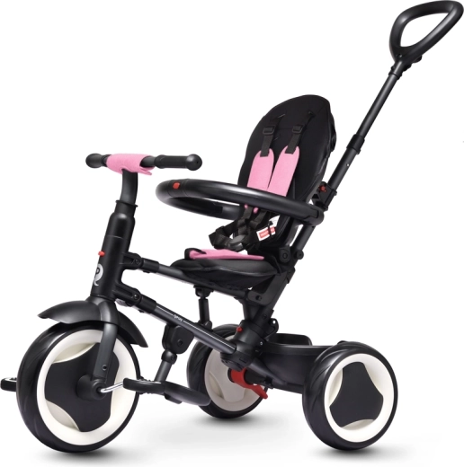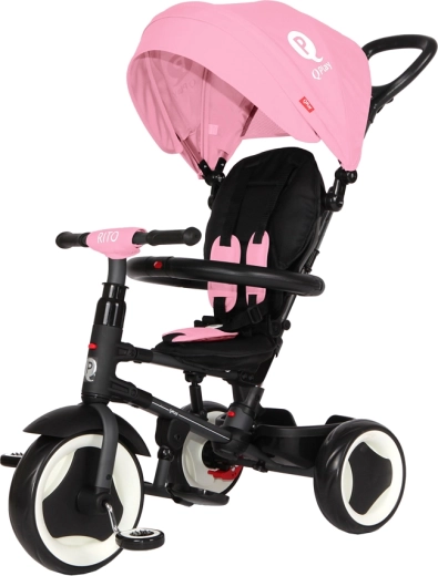 Trehjuleren QPLAY Rito Pink er designet til maksimal komfort for både barn og forælder. Den tilbyder højdejusterbart skubbehåndtag, to hældningspositioner på ryglænet og et åndbart, blødt sæde. Takket være det sammenklappelige system gør du den hurtigt klar til turen og opbevarer den lige så let – efter sammenklapning kan den bekvemt trækkes som en rejsetaske.