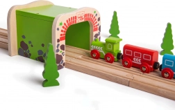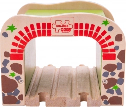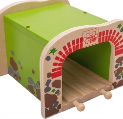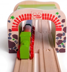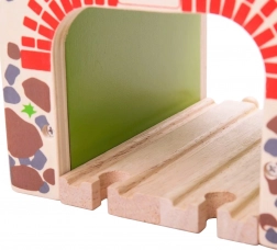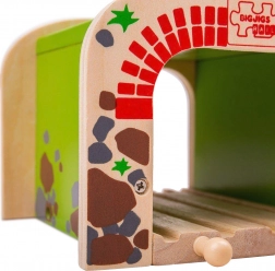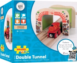 Den dobbelte trætunnel BIGJIGS RAIL bringer mere action og mere flydende drift til verdenen af trætogbaner. Takket være den dobbeltsporede gennemkørsel kan to tog køre igennem på én gang, hvilket understøtter fælles leg og udvikling af koordination. Den robuste konstruktion og det attraktive motiv af mursten og sten giver banen et realistisk udseende.