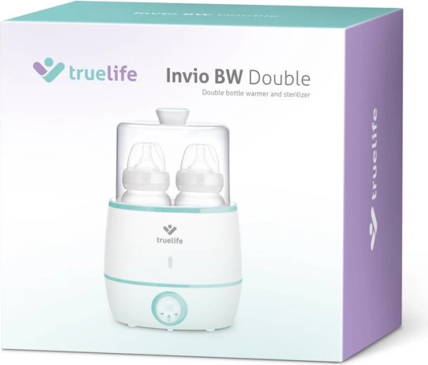 En praktisk og hurtig hjælper til forældre – TrueLife Invio BW Double flaskevarmer kan varme to flasker samtidig, holde en stabil temperatur på 37 °C takket være Keep Warm-funktionen og desuden tilbyde sterilisering uden behov for en ekstra enhed. Jævn opvarmning, hurtig drift, støjsvag gang og et overskueligt LCD-display sikrer nem madning, når du har brug for det.