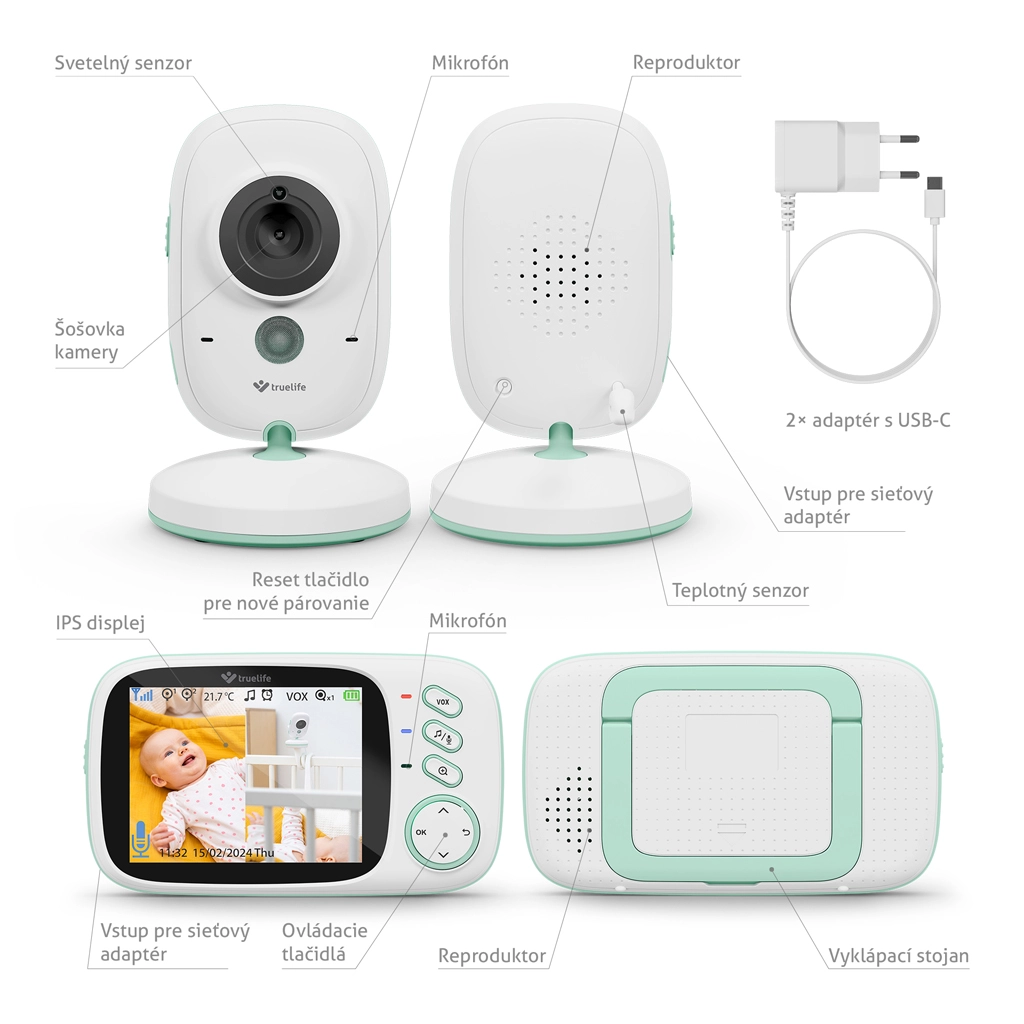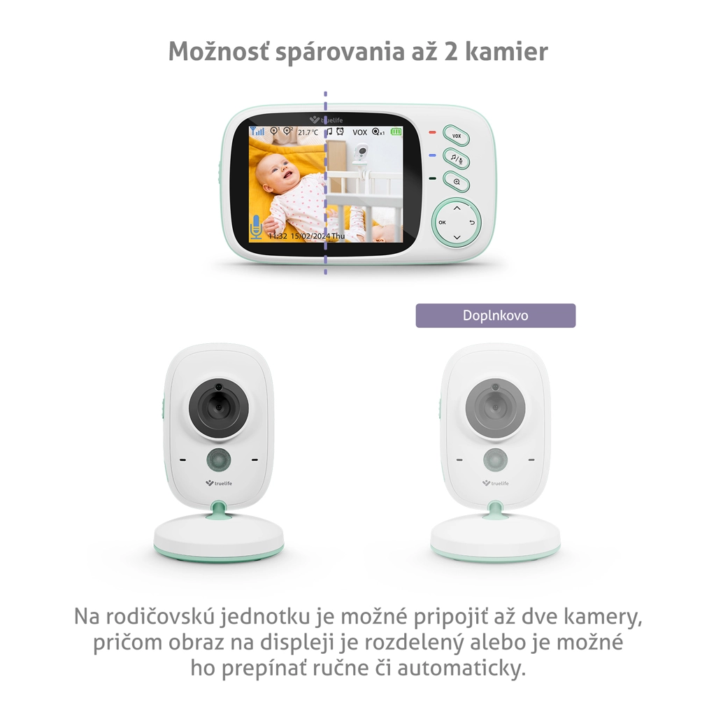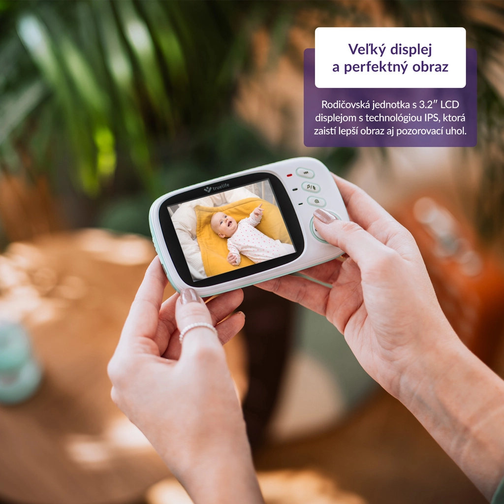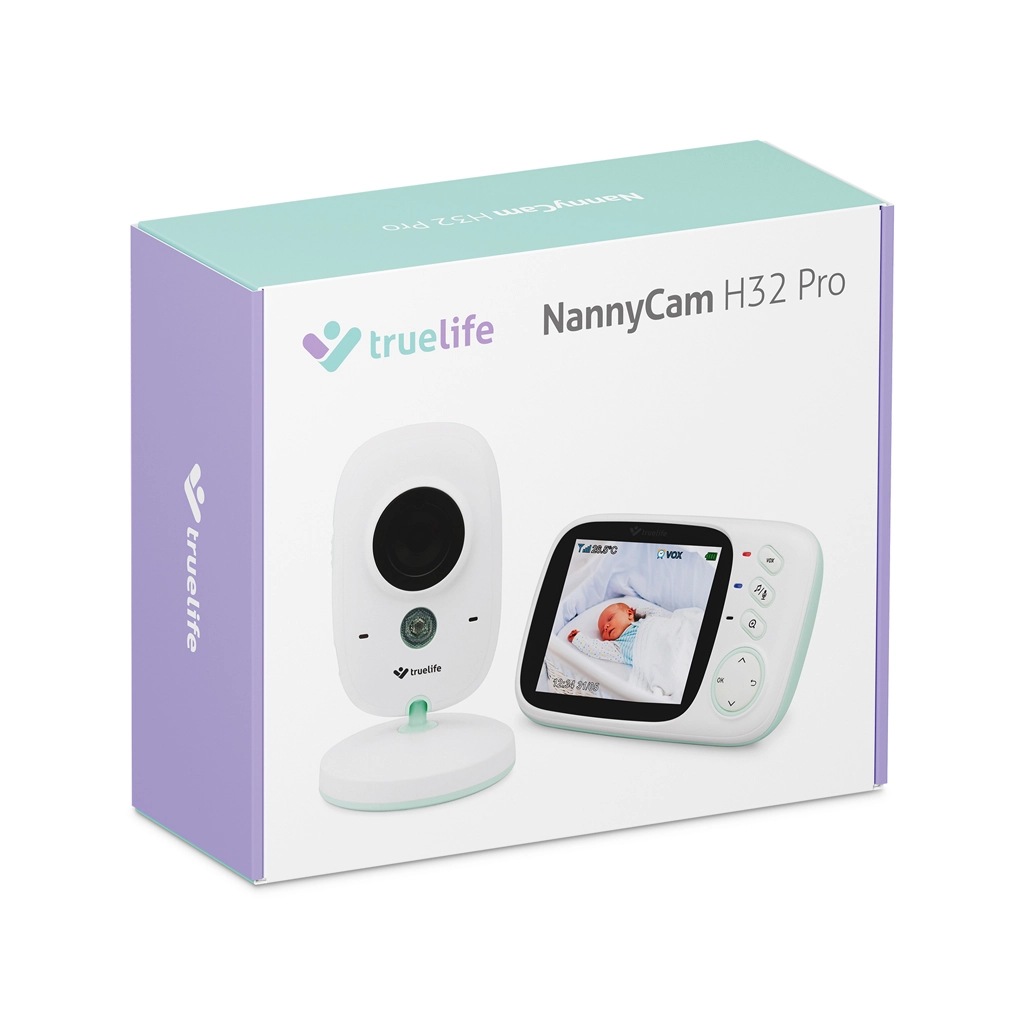 TrueLife NannyCam H32 Pro er en pålidelig digital video-babyalarm, som giver dig krystalklart billede på den 3,2″ IPS-skærm. Når det bliver mørkt, aktiveres automatisk nattesyn med rækkevidde op til 5 m. Med tovejs-kommunikation kan du berolige din baby med din egen stemme eller afspille en af 8 forudindstillede vuggeviser.