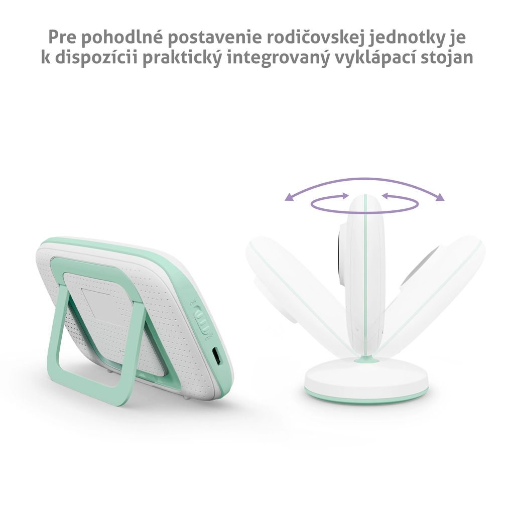 Den praktiske VOX-tilstand forlænger batteritiden op til 20 timer ved kun at vække skærmen, når der registreres lyd. Babyalarmen måler også rumtemperaturen og giver besked ved ændringer. Med en robust rækkevidde op til 300 m i åbent terræn kan du bevæge dig frit i hjemmet. For større dækning kan du parre op til 2 kameraer og vippe kameraet efter behov; en holder til tremmesengen kan tilkøbes: TrueLife NannyCam H32 Holder.