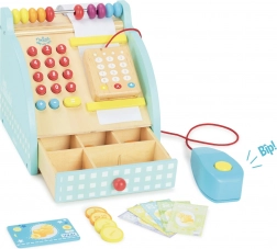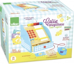 Det træ-kasseapparat fra VILAC er et perfekt redskab til at udvikle rolleleg, kommunikation og social interaktion. Takket være realistiske elementer som numerisk tastatur, pengeskuffe og betalingsterminal får børnene ægte sjov ved “salg” og at tælle penge.