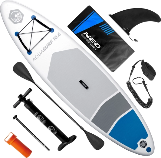Alt-i-én: justerbar aluminiumsåre, håndpumpe, sikkerhedsleash, aftagelig finne, reparationssæt og rummelig rygsæk. Pak ud, pump op og kom afsted.