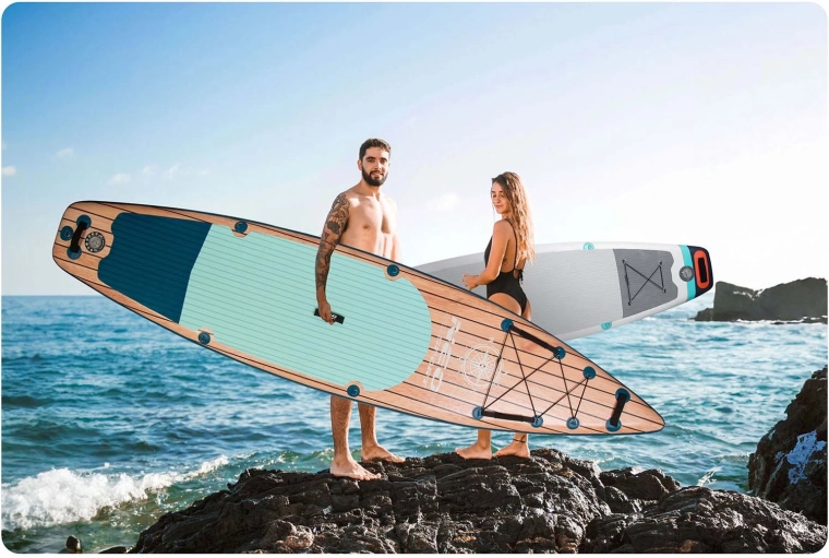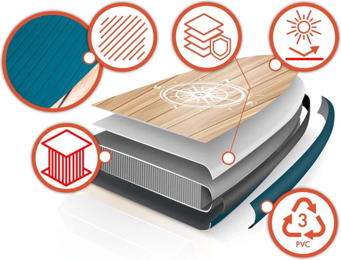 Dobbeltvævet Drop Stitch, tredobbeltlags PVC og forstærkede sømme giver fremragende stivhed, holdbarhed og lav vægt. Ideel til længere ture og daglig brug.