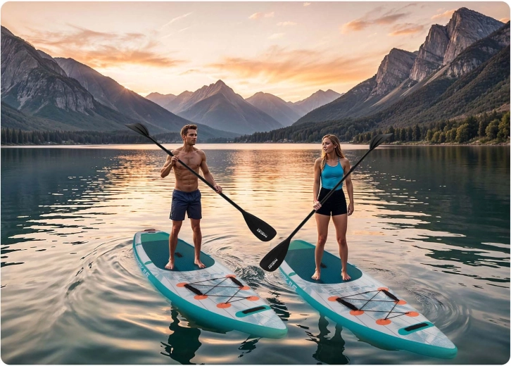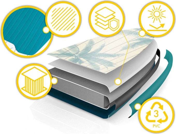 Flerlags PVC med drop-stitch-kerne sikrer høj stivhed, holdbarhed og lang levetid, samtidig med at den bevarer lav vægt for nem transport.