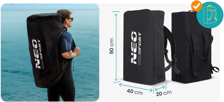 I pakken er alt, hvad du behøver: justerbar paddel, aftagelig finne, leash, to-virkende pumpe med manometer, reparationssæt og en robust rygsæk. Bare pust op og kom afsted.