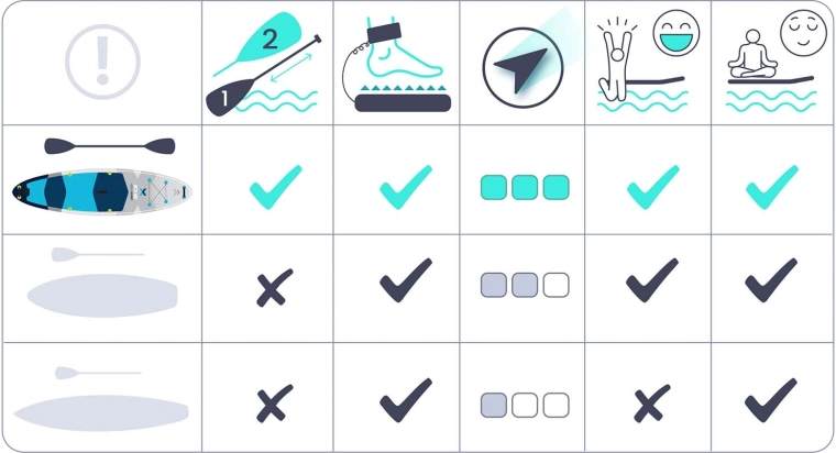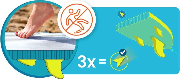 Den teksturerede EVA-skum giver fremragende greb – også med våde fødder – for sikker ståstilling, stabil kraftoverførsel og komfortabel manøvrering på vandet.