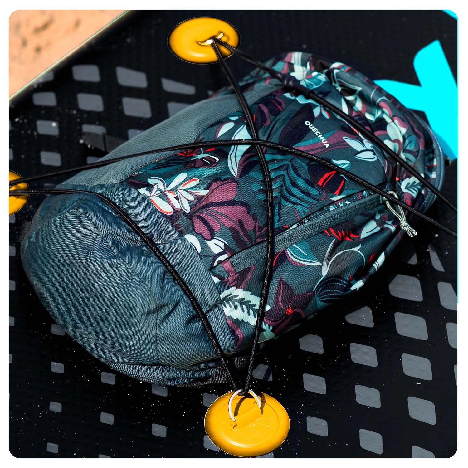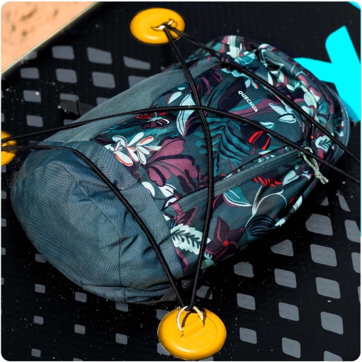Forreste elastiske snore og flere D-ringe holder rygsæk, jakke og flaske inden for rækkevidde. Rejs let og sikkert – alt bliver, hvor det skal.