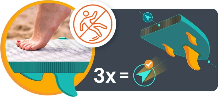 Den brede dækflade, skridsikre EVA-måtte og elastiske bungee-snore holder dig og din oppakning sikkert på plads. Ideel til begyndere, familier og afslapning på vandet.
