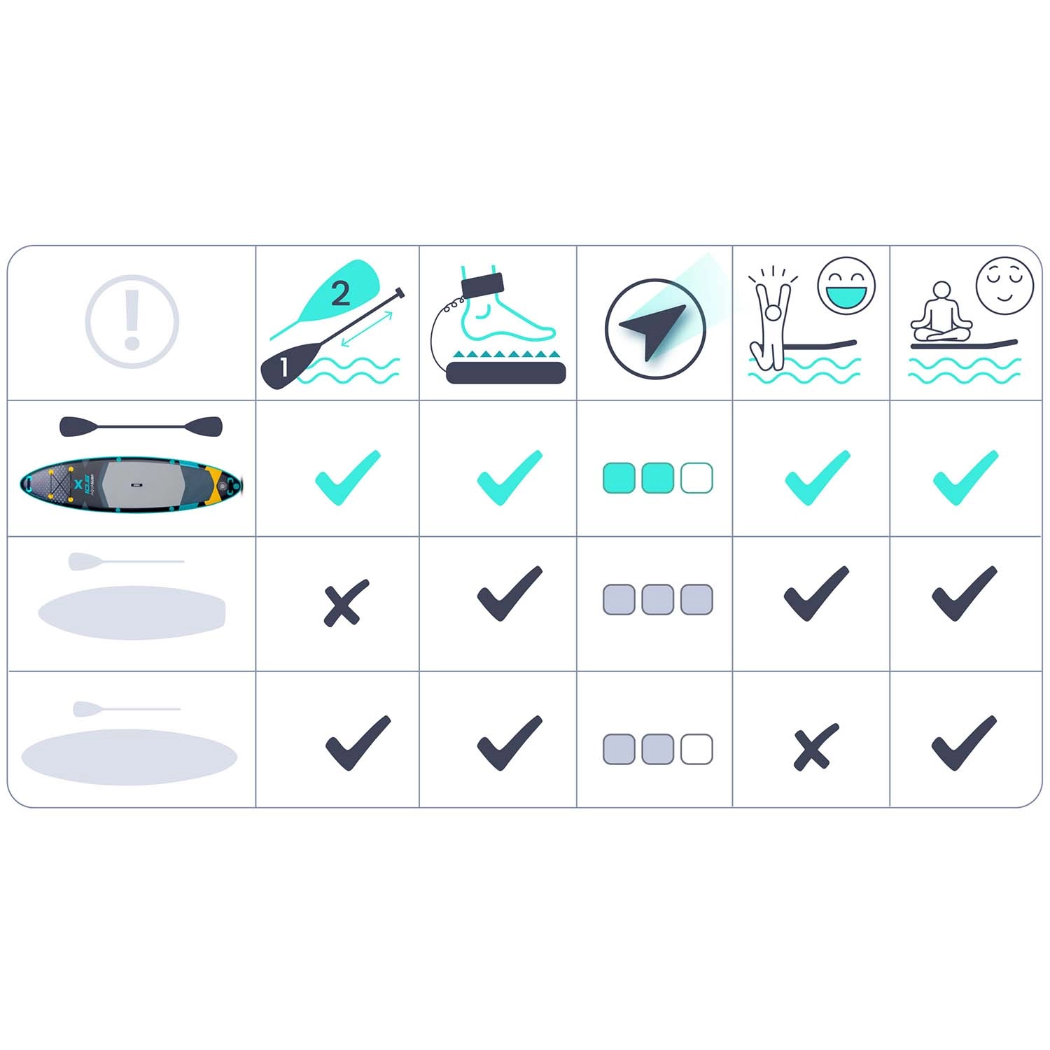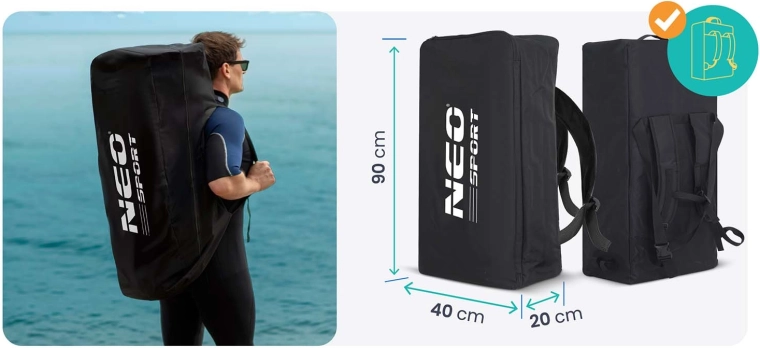 Det komplette sæt lader dig komme afsted med det samme. Justerbar aluminiums-pagaj 162–210 cm, tovejspumpe med manometer, sikkerhedsline til anklen og en robust transportrygsæk.