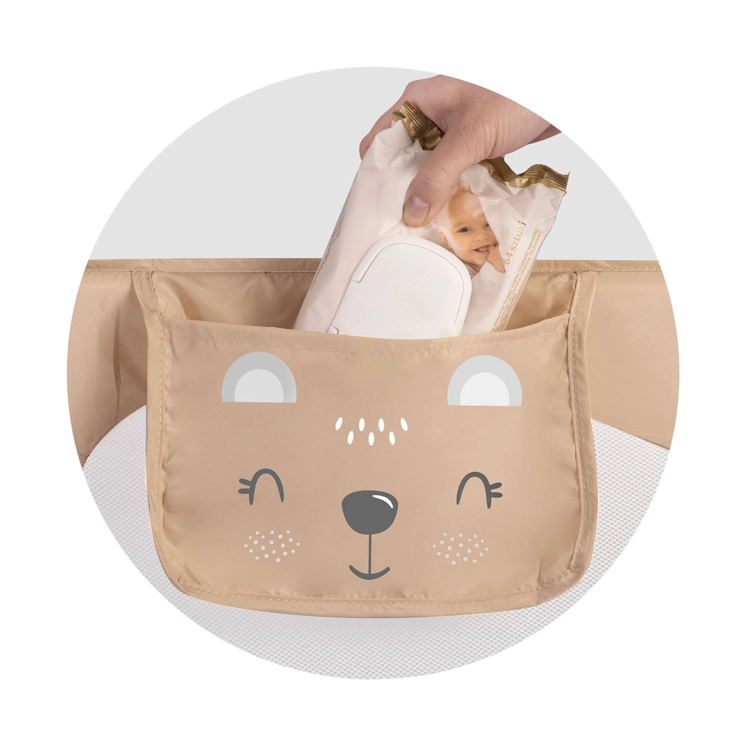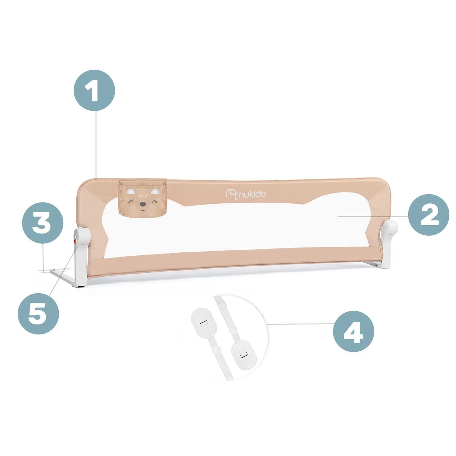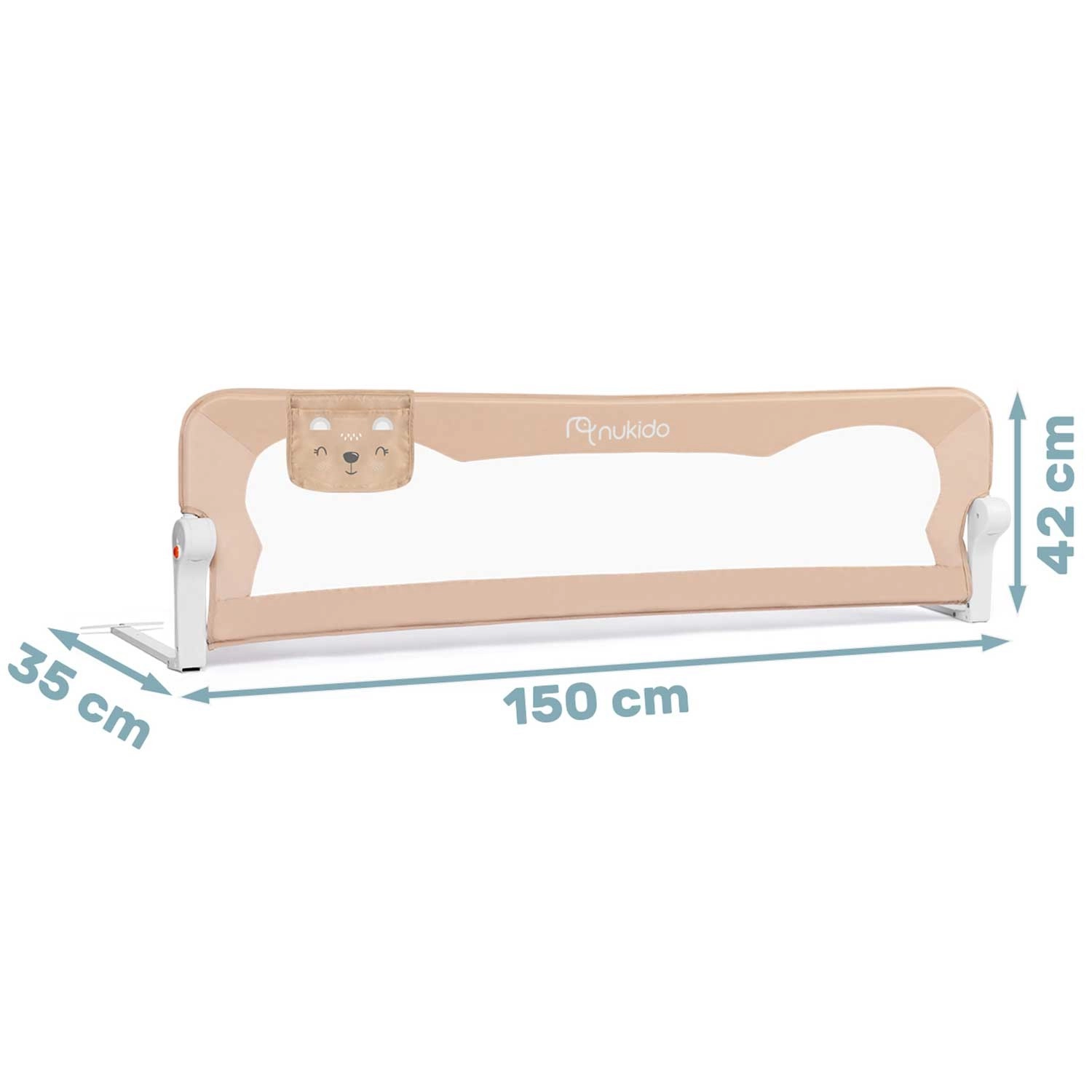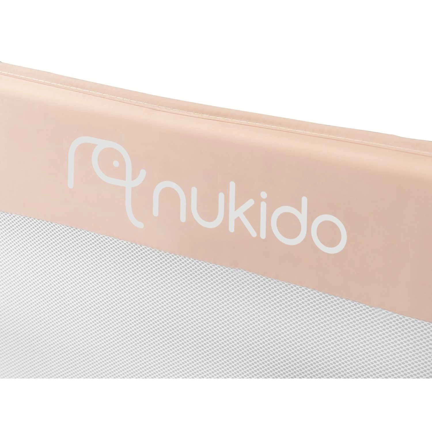 Det praktiske NUKIDO sengegitter i beige giver pålidelig beskyttelse mod fald og bevarer overblikket takket være det åndbare net. Den holdbare stålkonstruktion, nedfældning op til 180°, de sikre SafetyBelt-remme og en sikkerhedslås mod utilsigtet sammenklapning sikrer maksimal sikkerhed og nem brug. En praktisk lomme til sut eller småting er også inkluderet. Opfylder standarden BS 7972:2001+A1:2009.