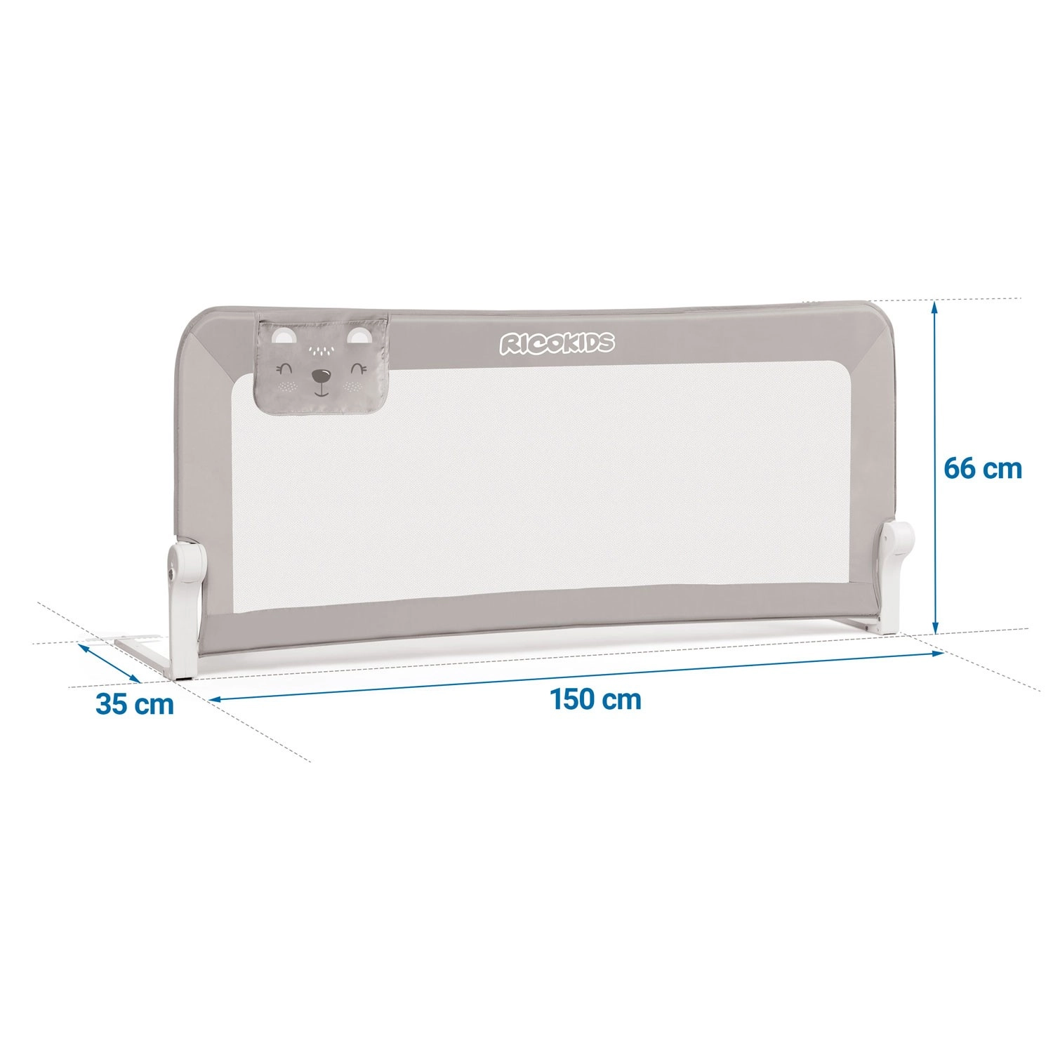 Installationen er hurtig og fleksibel: du kan fastgøre den med skruer til sengens konstruktion eller bruge SafetyBelt-sikkerhedsstropper – eller kombinere begge metoder for maksimal stabilitet. Den praktiske lomme holder sut, yndlingslegetøj eller andre småting lige ved hånden.