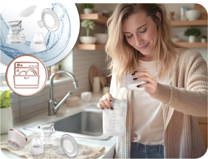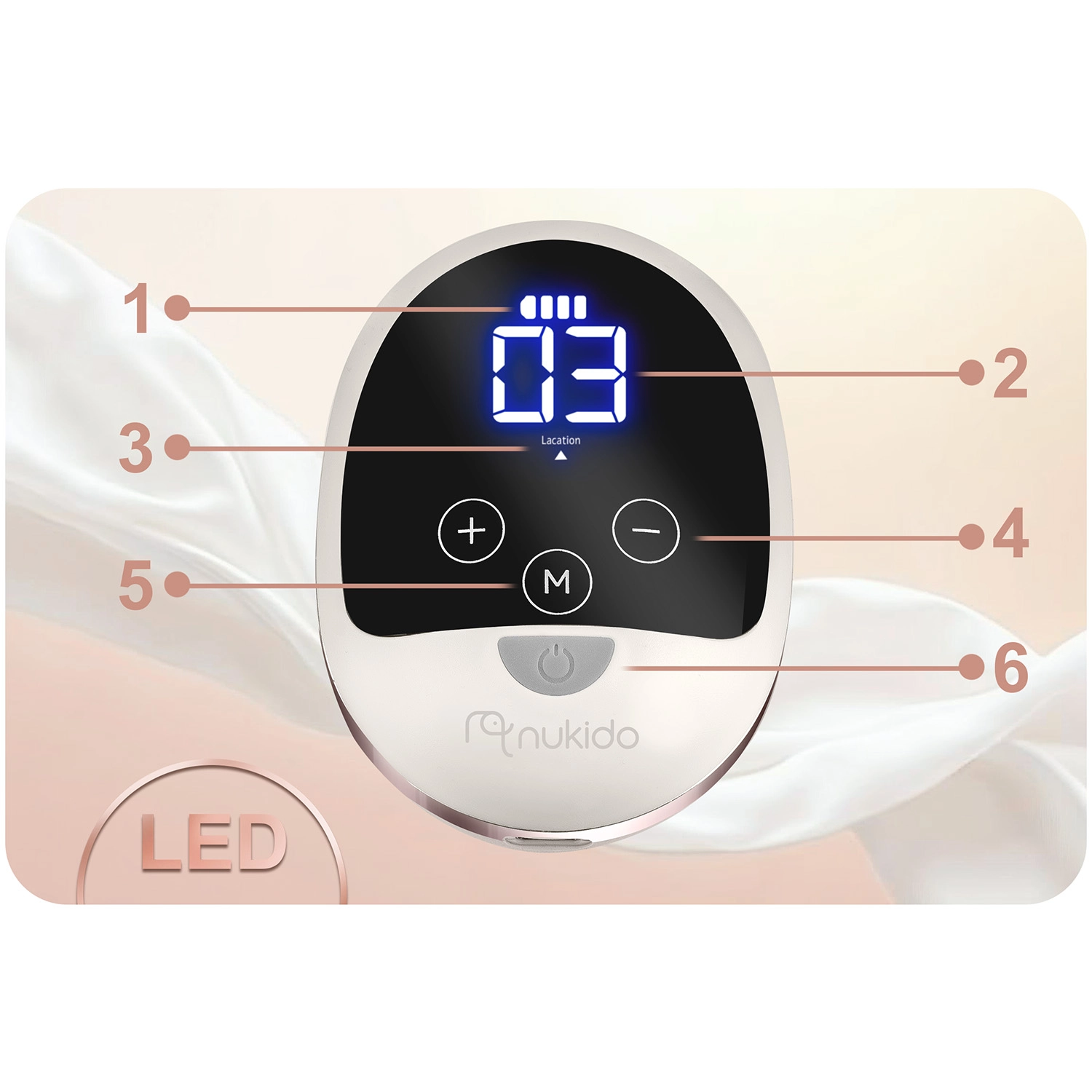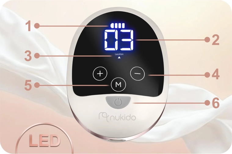 Det letlæselige LED‑display med touchpanel gør betjeningen enkel dag og nat – du følger fase, stimulationsniveau og batteristatus. Med integreret Li‑ion‑batteri og USB‑C‑opladning får du op til 6 timers mobilitet til pumpning hjemme, på arbejde og på rejser. Stille drift forstyrrer ikke barnets søvn.