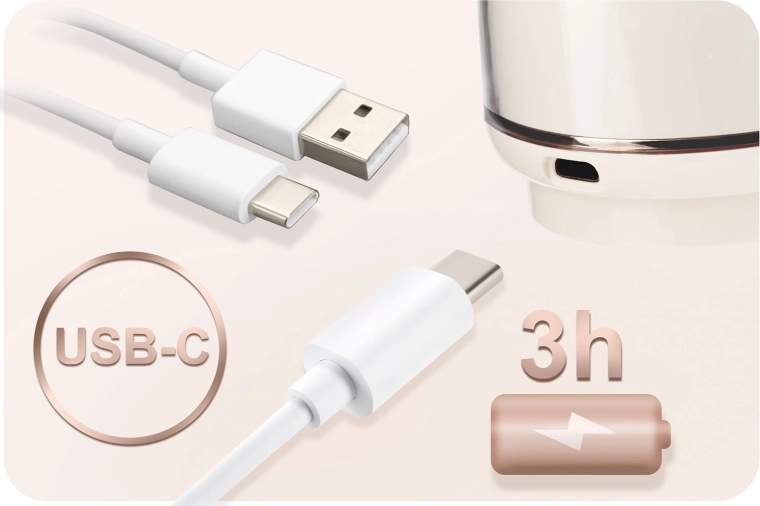 Det indbyggede lithiumbatteri giver op til 3 timers drift. Opladning via USB‑C er hurtig og bekvem, så du kan pumpe derhjemme, på arbejdet og på farten.