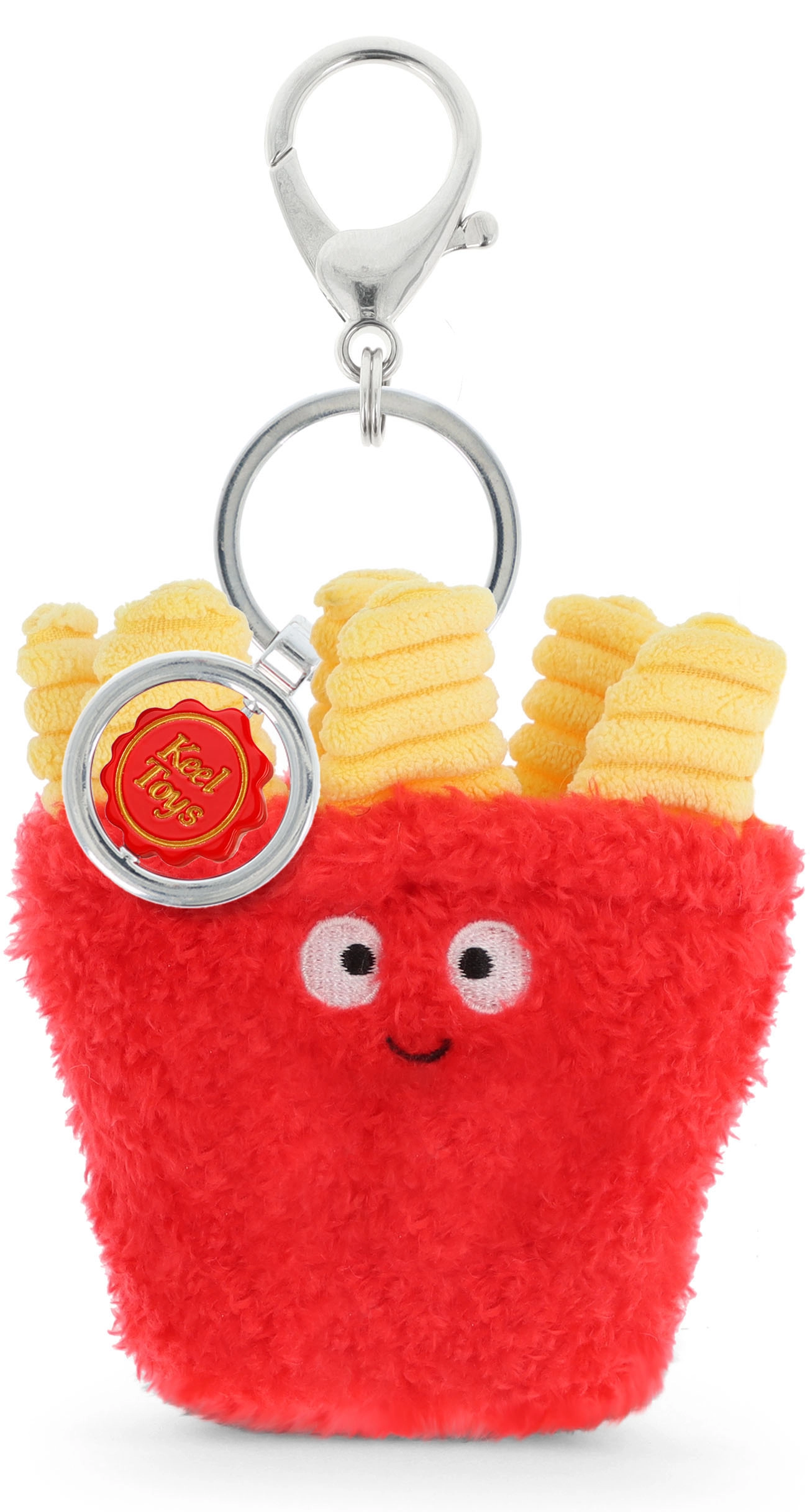Sødt taskevedhæng formet som pomfritter, 12 cm, lavet af blød plys, som giver din rygsæk eller håndtaske stil, leg og et personligt udtryk. Takket være den solide udførelse er det behageligt at røre ved og samtidig holdbart til daglig brug.
