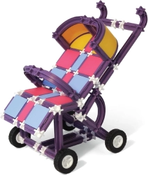 Byggesættet Seva Rodina – gåtur er et ideelt valg for små byggere, der elsker fantasifuld leg og aktiviteter i det fri. Takket være de livlige farver og de let sammensættelige dele kan børn hurtigt bygge en barnevogn til dukken, en gynge, en bænk og andre parktilbehør.