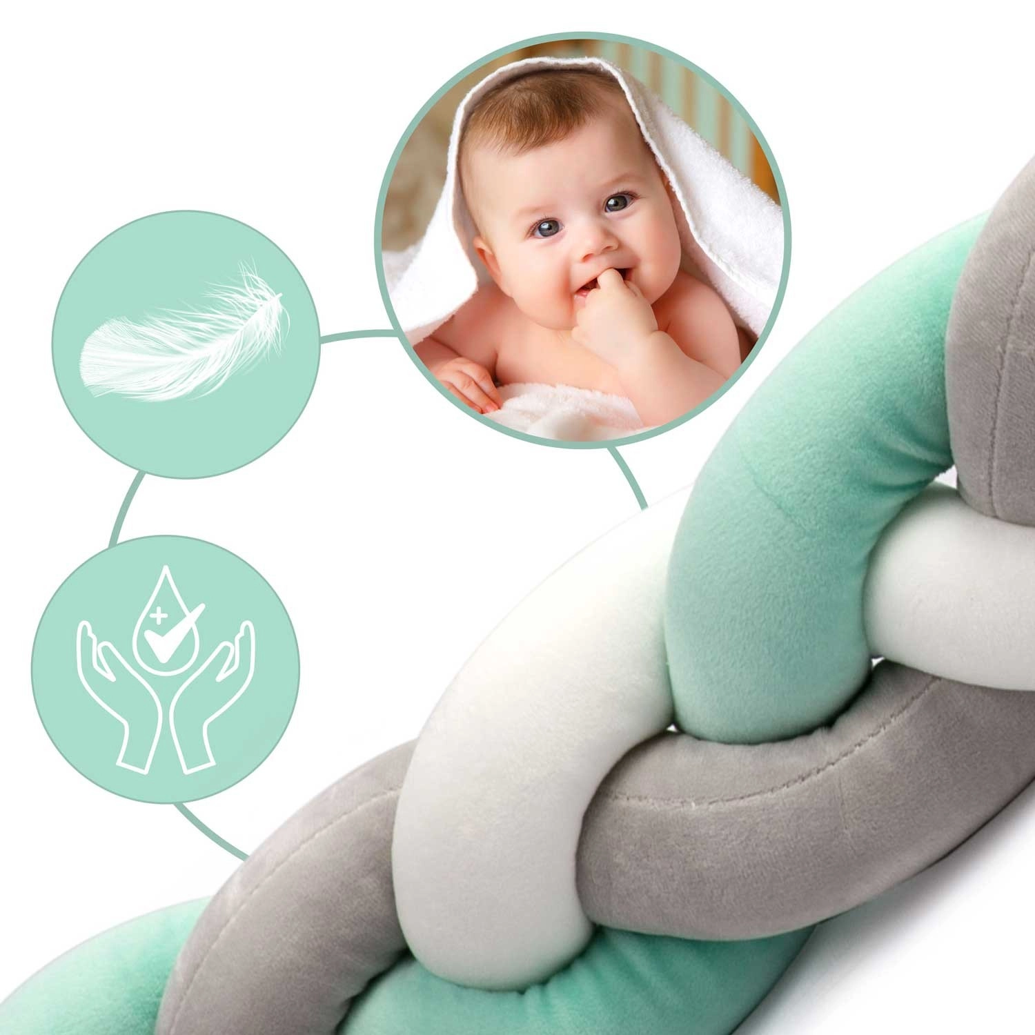 Det bløde, antiallergiske design uden skarpe dele beskytter barnet under søvn og leg og dæmper stød mod tremmerne.