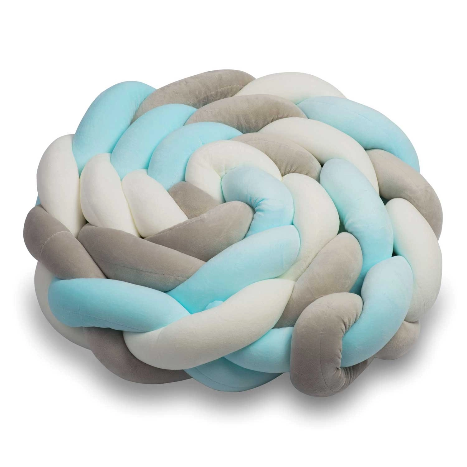 Blød, flettet sengekant til babyseng fra Ricokids giver barnet tryghed fra de første dage, beskytter mod stød fra tremmerne og mod træk. I en universel blå‑grå kombination, der fint fuldender børneværelset. Den er antiallergisk, behagelig at røre ved og nem at vedligeholde ved vask på 30 °C.