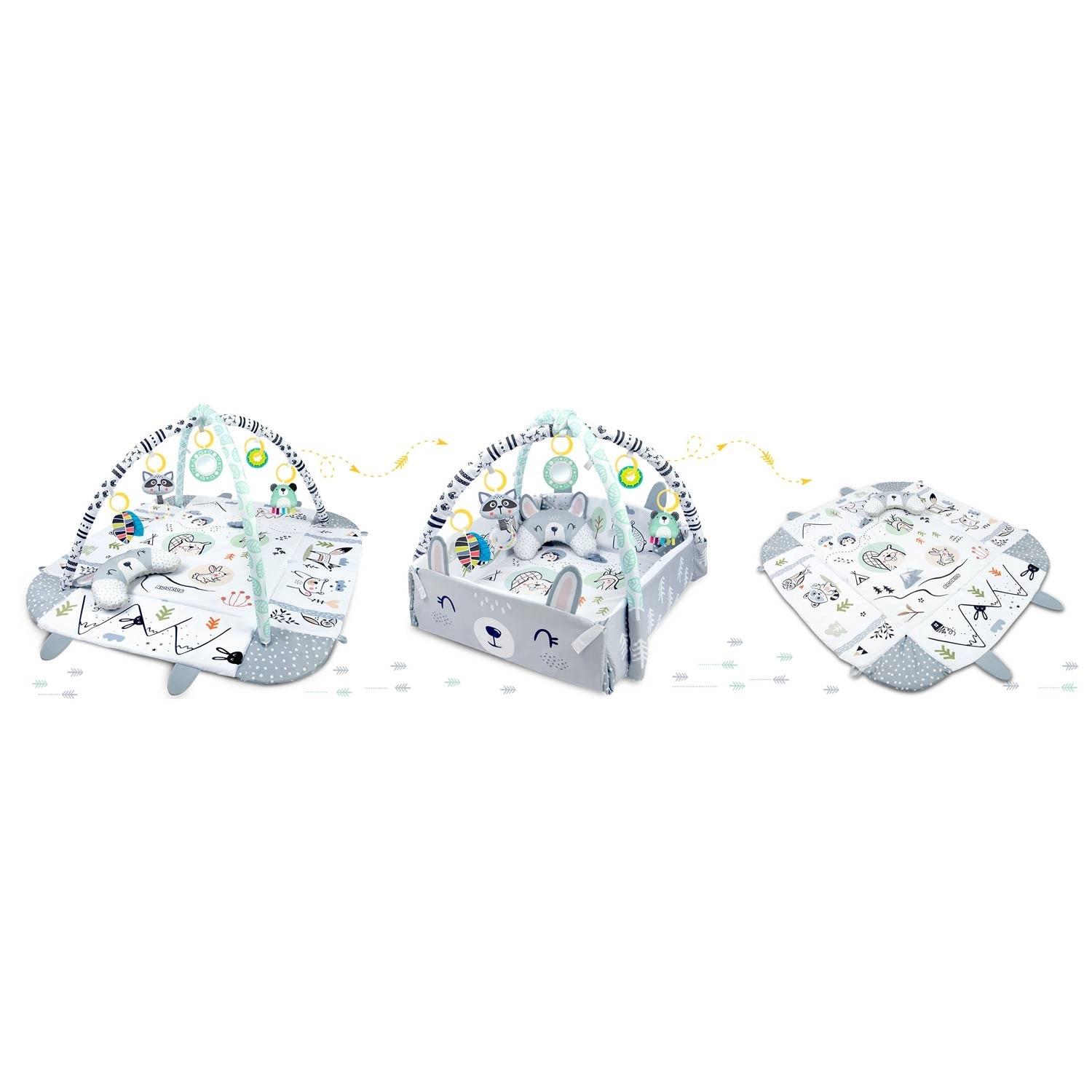 Bløde, løftbare sidekanter og krydsede buer gør det nemt hurtigt at ændre opsætningen efter babyens alder og aktivitet. Et sikkert område til at ligge, lege og tummy time.