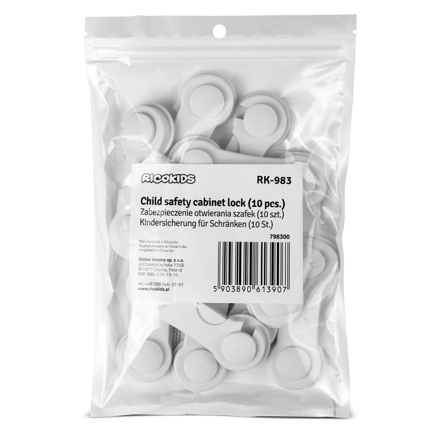 RICOKIDS sikkerhedssikringer forhindrer uønsket åbning af skabe, skuffer, husholdningsapparater eller toiletsædet og hjælper med at skabe et mere sikkert miljø for dit barn. Takket være den høje kvalitet af 3M-klæbet sidder de godt fast på de fleste glatte overflader og kan samtidig nemt fjernes uden at beskadige møbler.