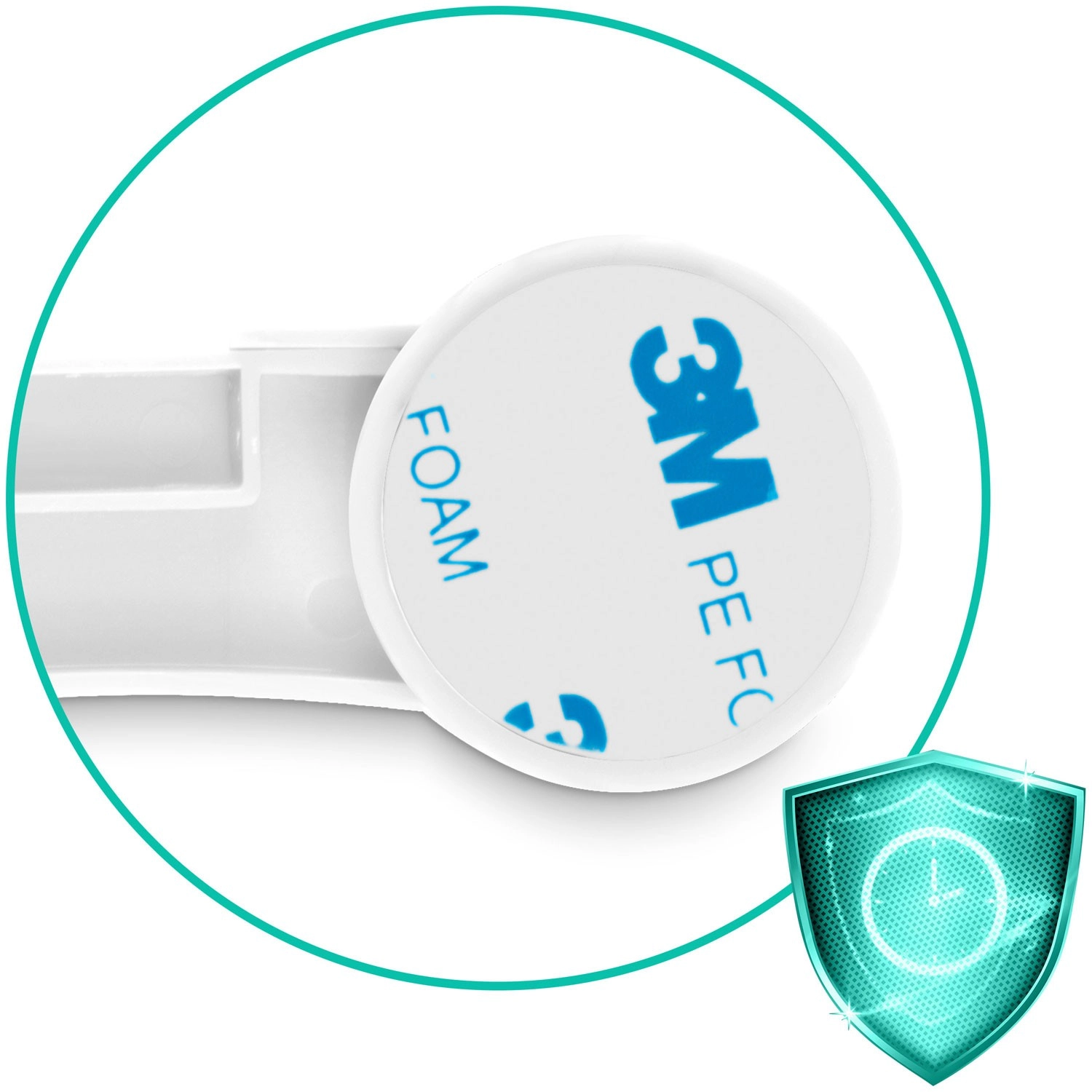 Monteringen tager kun et øjeblik – affedt overfladen, fjern beskyttelsesfilmen og tryk fast. Det kompakte hvide design virker rent og diskret, så det passer ind i enhver indretning. Sættet indeholder 10 stk., så du nemt kan sikre flere steder i hjemmet på én gang.