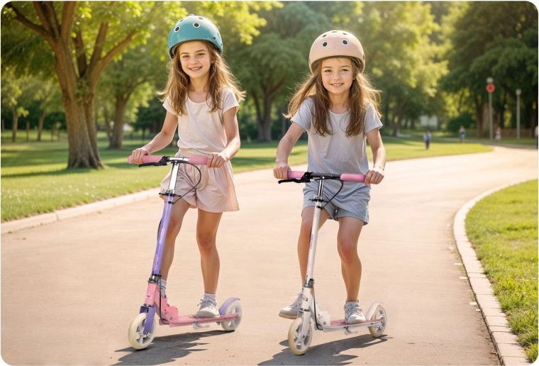 Scooteren er udstyret med en håndbremse på styret for hurtig reaktion samt en fodbremse på bag-skærmen. Dit barn kan dermed standse sikkert i enhver situation og har fuld kontrol under kørslen.