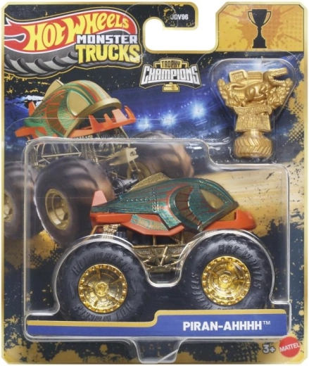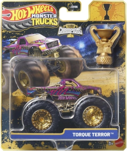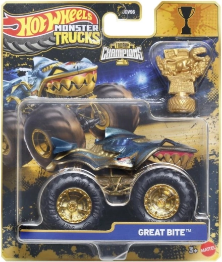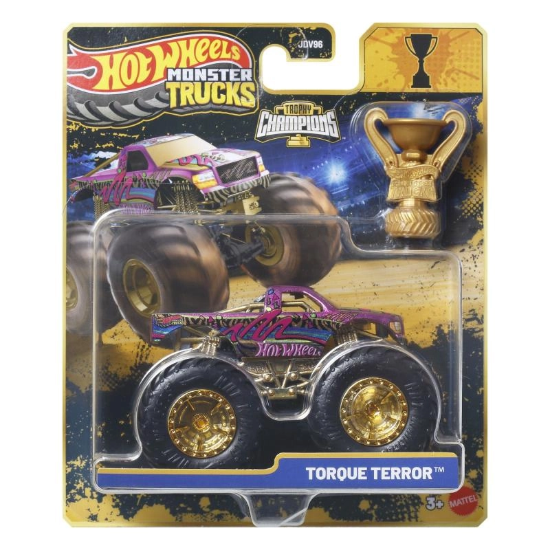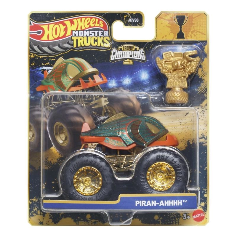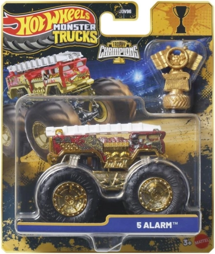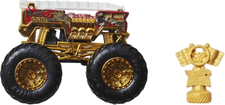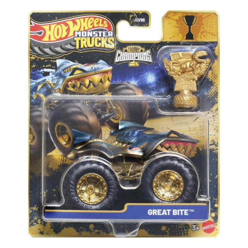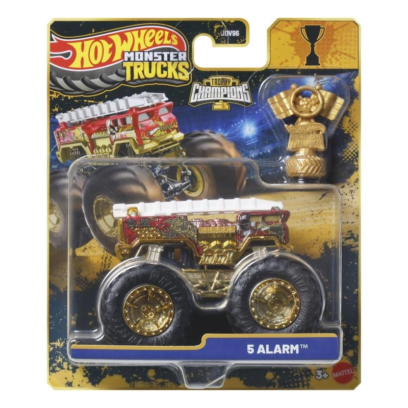 Pakken indeholder et gyldent Hot Wheels Monster Trucks Live‑trofæ – perfekt til racermæssige historier og flot udstilling.
