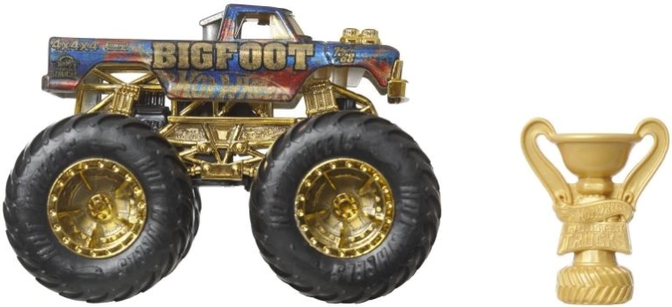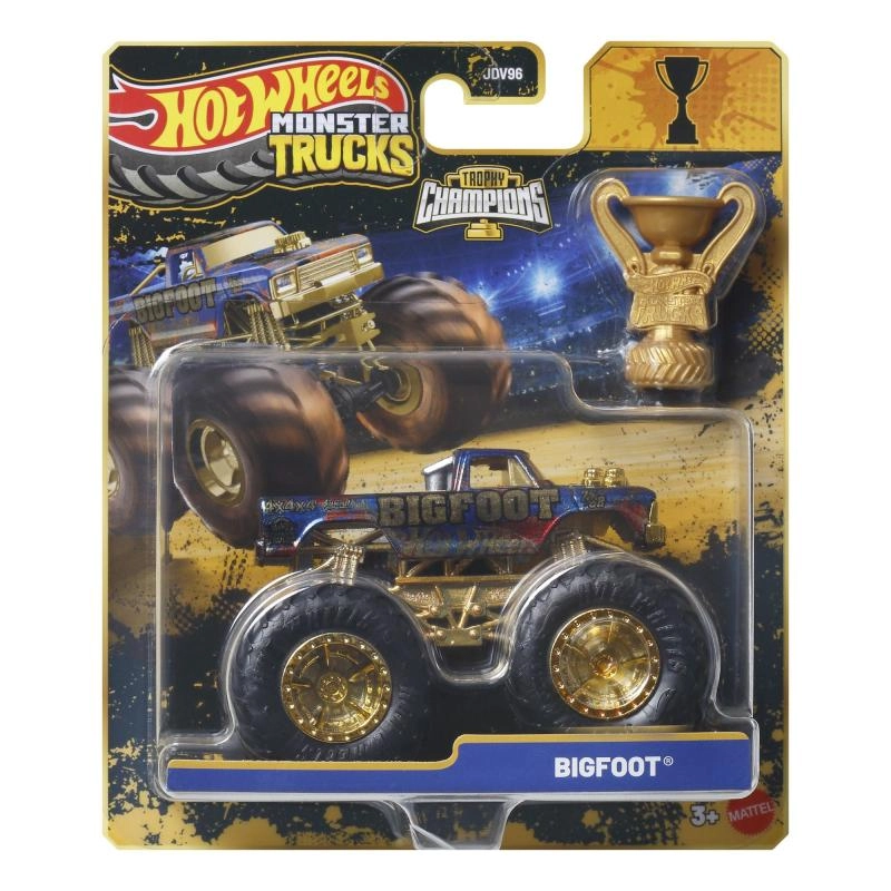 Den særlige mindekollektion Hot Wheels Monster Trucks Trophy Champions præsenterer den ikoniske BIGFOOT i premium udførsel. Den robuste konstruktion, de store profilerede hjul og de gyldne detaljer understreger det legendariske look, mens det medfølgende trofæ giver den rette stemning til hvert eneste løb. Modellen er ideel både til leg og som udstillingsstykke i samlingen.