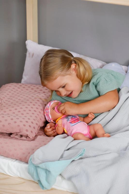 Introducér børn til babypleje på en legende og sikker måde. BABY born Lena har et blødt, børnevenligt design og enkle funktioner, der støtter udviklingen af finmotorik og fantasi. Når bleen kommer i kontakt med vand, dukker et gult hjerte op, hvilket giver legen et realistisk præg.
