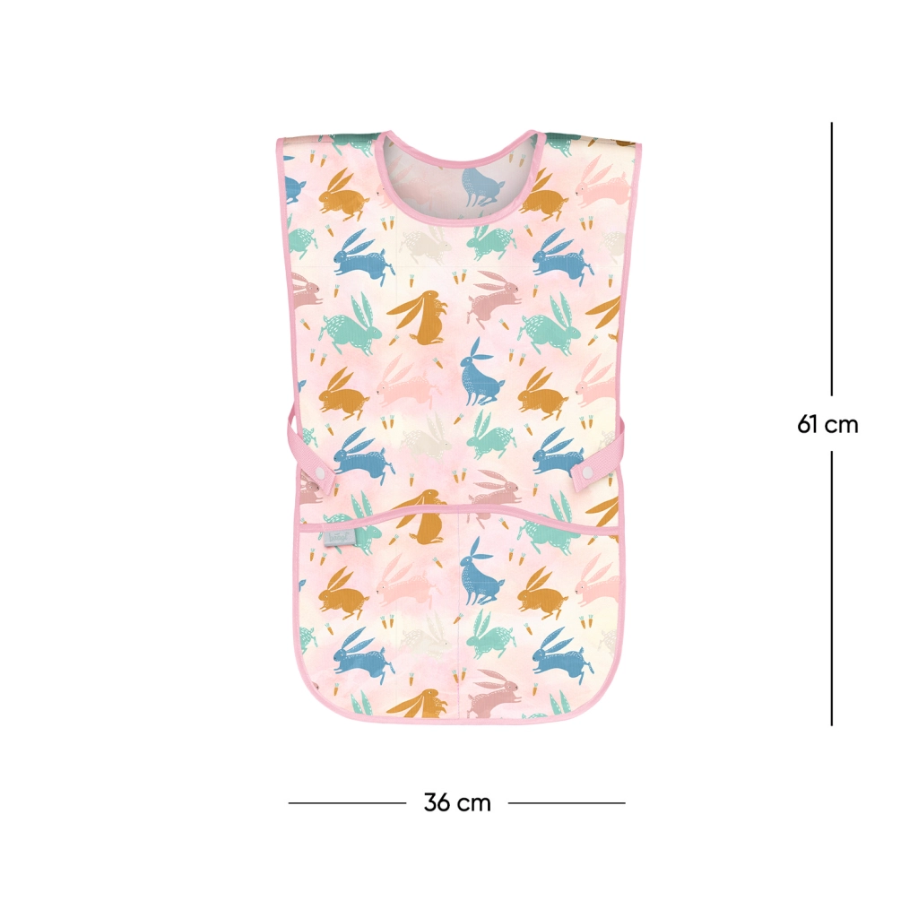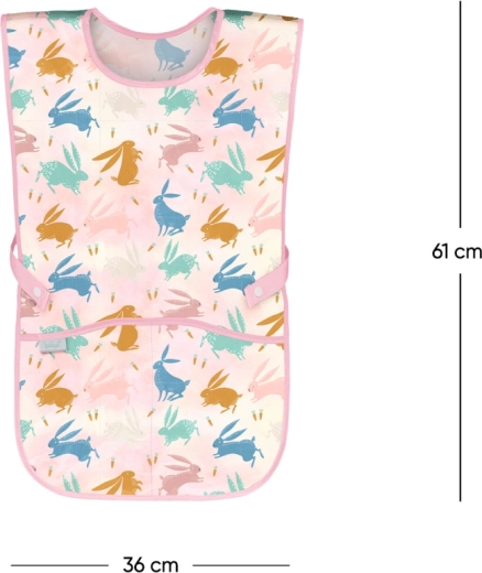 BAAGL Bunny børneforklædet er designet til pålideligt at beskytte tøjet mod maling, lim og mad. Takket være det let aftørrelige materiale kan du nemt tørre det af efter brug, og så er det klar til nye eventyr. Det søde motiv med kaniner og gulerødder begejstrer børn og styrker deres skaberglæde.