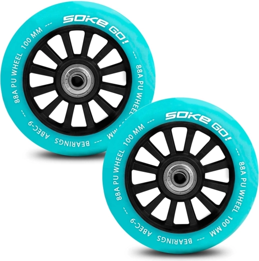 Kvalitetshjul fra SOKE i turkis leverer pålidelig ydeevne til daglig kørsel og øvelse af tricks. Polyurethanblandingen 88A balancerer hastighed og kontrol, mens ABEC-9-lejerne sikrer jævne igangsætninger og minimal modstand.
