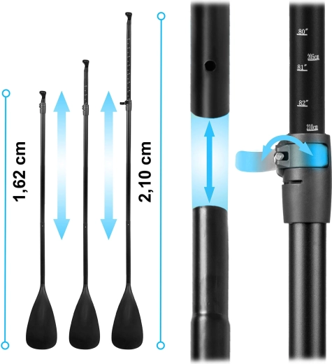 • Hurtig klargøring – universel ventil, dobbelthandlingspumpning og nem længdejustering af pagajen med låseklemme.