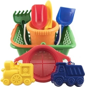 - Kurv, spand, si, skovl, spade, rive, 2 sandforme