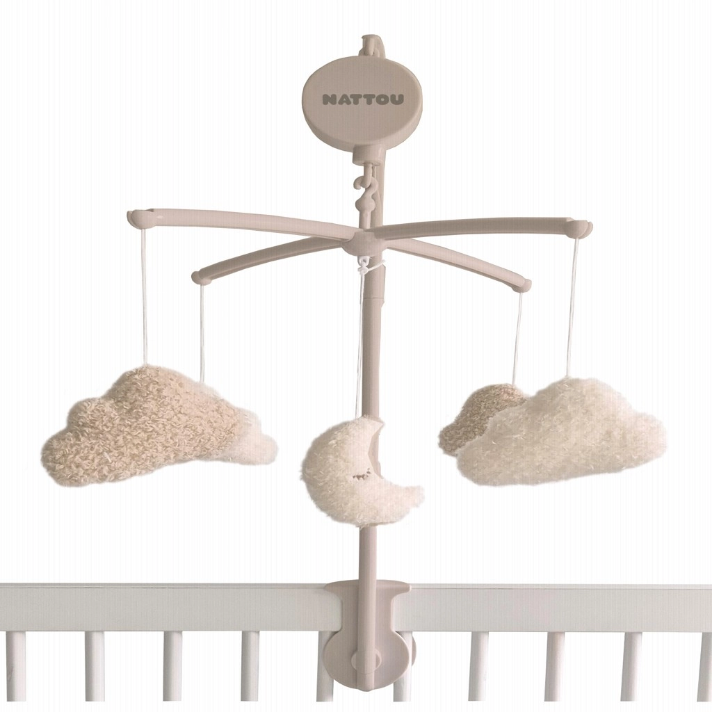 NATTOU Teddy musikuro med måne og skyer skaber et roligt miljø til indsovning og afslapning. Den blide “Le-La-Lu”-melodi og de jævnt bevægende plysbamser fanger barnets opmærksomhed, stimulerer sanserne og beroliger før sengetid. Det elegante design passer perfekt ind i ethvert børneværelse.