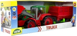Vi præsenterer Lena Truxx traktor med anhænger, den ideelle legetøj til små landmænd. Denne plastiktraktor skiller sig ud med sit robuste design i rød og grøn farve, som suppleres med en funktionel skovl og aftagelig anhænger. I traktorens kabine sidder en lille førerfigur, der tilfører legen en realistisk følelse.