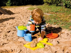 Dette sand-køkkensæt giver børn timevis af kreativ underholdning. Takket være de livlige farver og det gennemtænkte udvalg af redskaber kan små kokke “lave mad” i sandkassen, ved vandet og i haven og dermed udvikle deres motoriske færdigheder, fantasi og rolleleg.