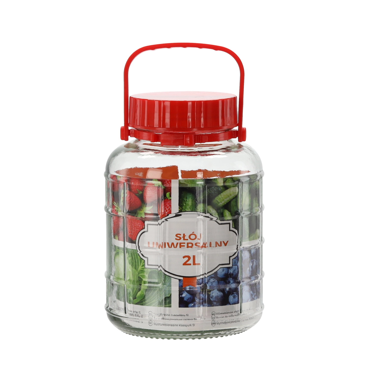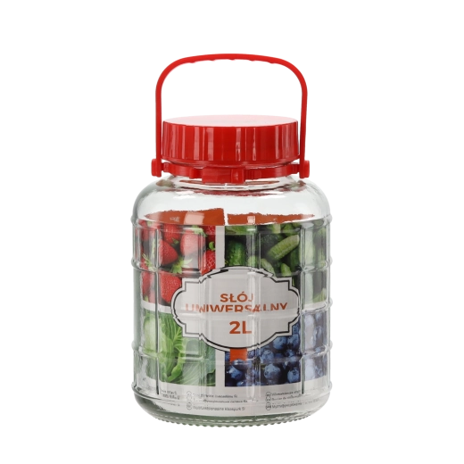 Universel glaskrukke med en kapacitet på 2 l, ideel til hjemmekonservering, opbevaring af tørret frugt, krydderier og andre fødevarer. Det praktiske plastlåg sikrer god tæthed og bevarer friskheden af indholdet i længere tid.