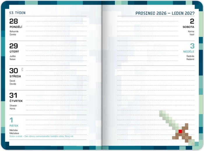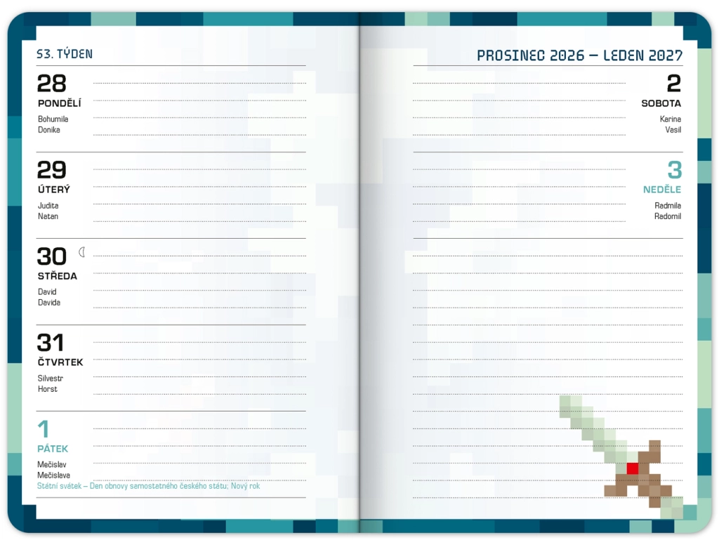 Hold styr på skoleopgaver med Gamer-kalenderen inspireret af bygge-videospilsuniverset. Takket være den overskuelige inddeling og de kompakte mål passer den i enhver rygsæk og hjælper dig med at planlægge lektier, prøver og fritidsaktiviteter.