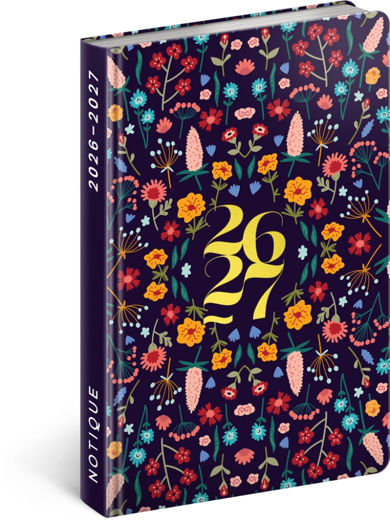 Elegant lommekalender NOTIQUE Petito Flora for perioden juli 2026 – december 2027 er ideel til daglig planlægning. Den tilbyder 18-måneders overblik, tjekkisk-slovakisk ugentligt søjlekalendarium med navne og helligdage samt kompakte mål 11 × 16 cm, perfekt til både håndtaske og rygsæk.