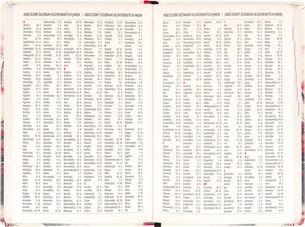 - Tjekkisk–slovakisk kalendarium – navne og helligdage for begge lande