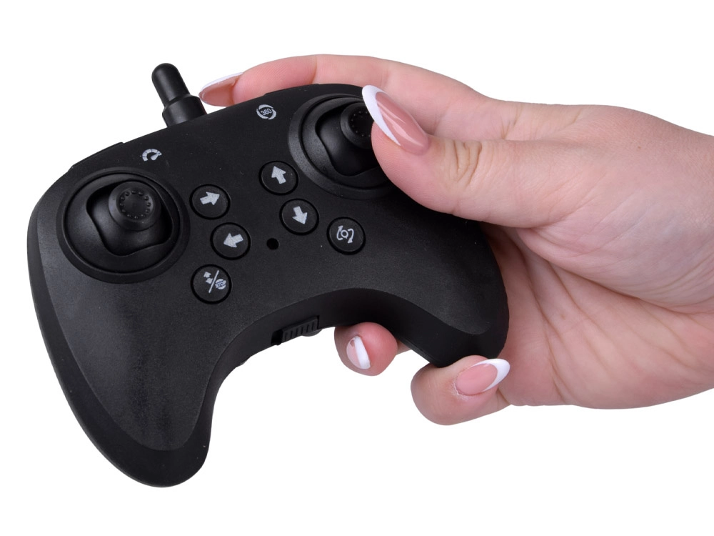 Den præcise fjernbetjening med behagelige joysticks sikrer fuld kontrol over bevægelsen – jævn opstigning og nedstigning, retningsskift samt imponerende 360° flips med et enkelt tryk. Dronen er velegnet til flyvning indendørs og udendørs (i vindstille) og hjælper med at udvikle reflekser, koordination og koncentration.