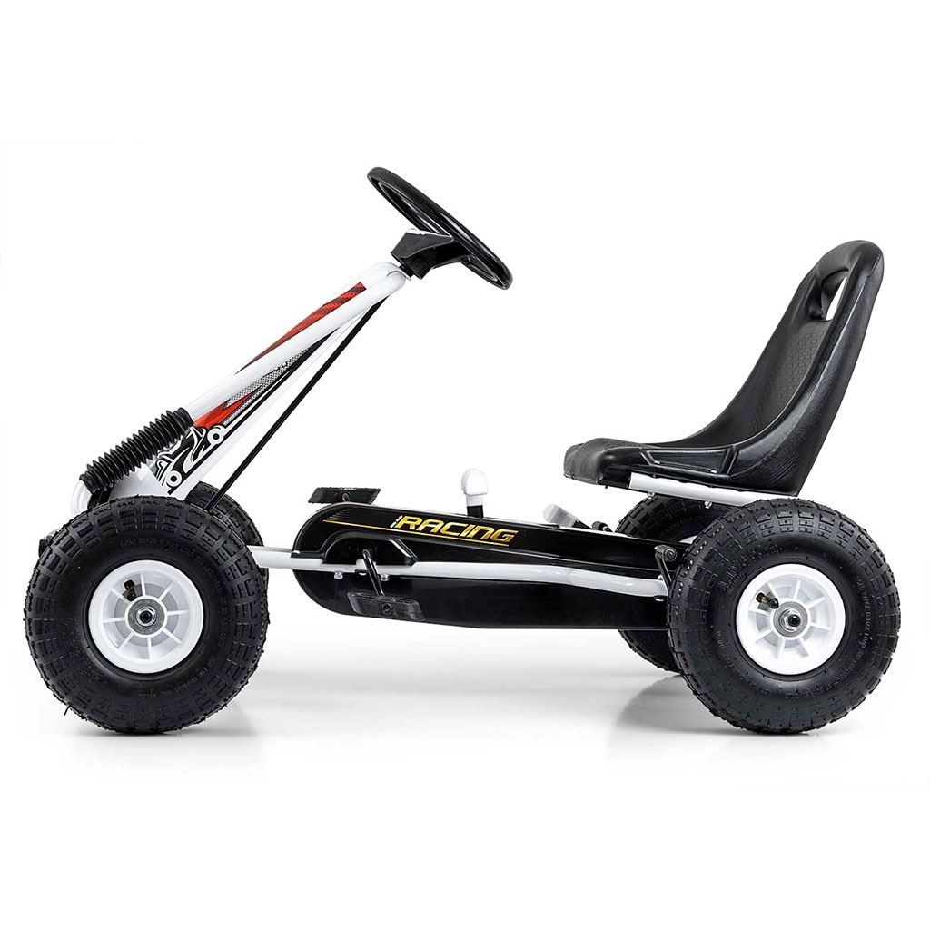 Gokarten MILLY MALLY Thor er et fremragende valg for små racerkørere i alderen 3–8 år. Den lette men stærke stålkonstruktion med plastbeskyttere giver et sporty look og høj holdbarhed. Takket være de store pneumatiske hjul med markant mønster er kørslen stabil og komfortabel på asfalt, brosten og faste stier.