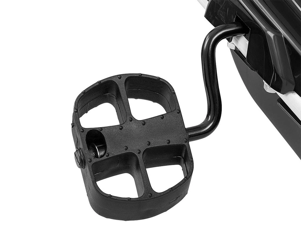 Kædetræk med mulighed for friløb og en håndbremse, der virker på begge baghjul, muliggør sikker nedbremsning og hastighedskontrol.