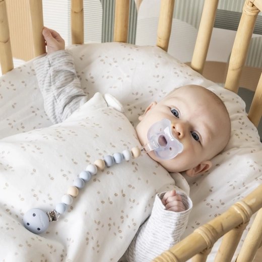 En stilfuld og sikker silikone sutteklips fra Nattou holder sutten ren og altid inden for rækkevidde. Med den stærke metalclips fæstnes den nemt på tøjet, og de bløde silikoneperler uden BPA er skånsomme mod barnets hud. Nemt vedligehold og tidløst design i pastelfarver.