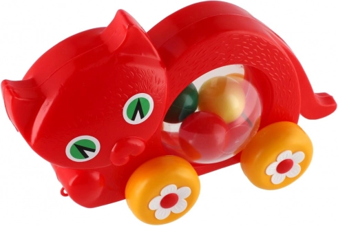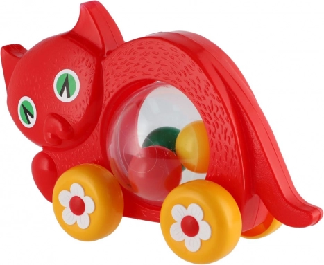 Denne farverige trækkekat er en ideel ledsager for børn, der er begyndt at udforske verden på egne ben. Under bevægelse sætter kuglerne sig i gang indeni legetøjet, hvilket motiverer barnet til at gå, udvikler grov motorik og understøtter sansemæssig perception.