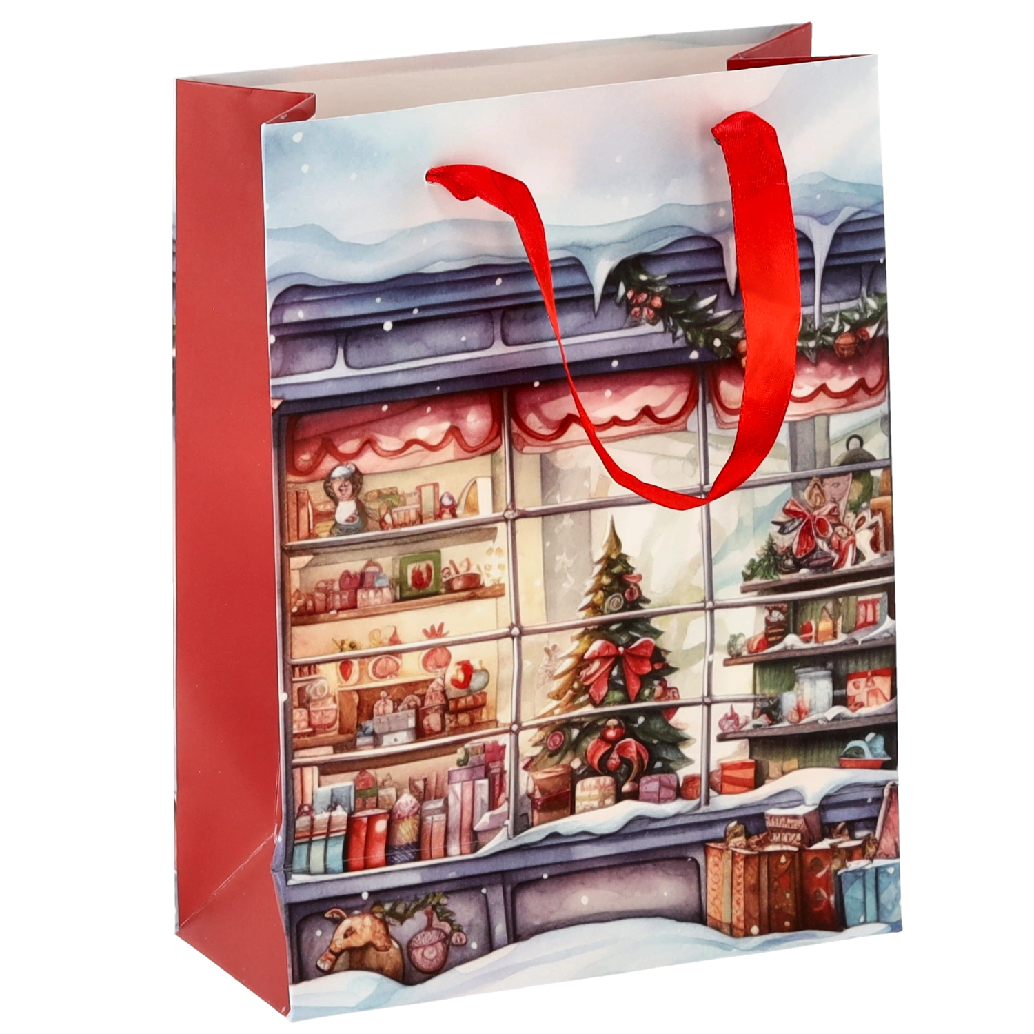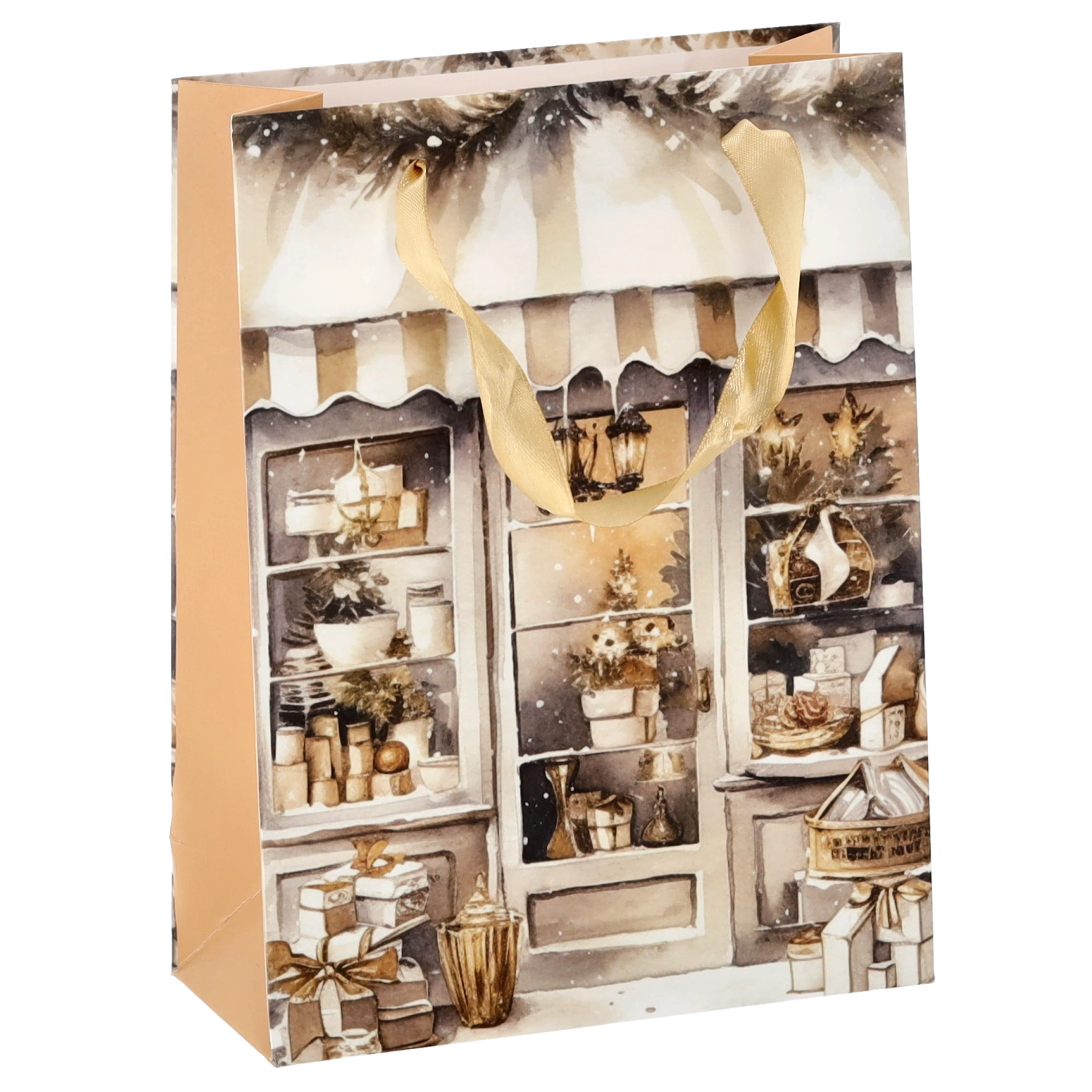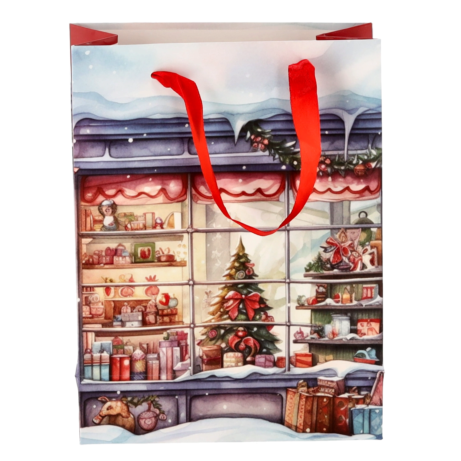 Gør gaveindpakningen til en ren fornøjelse. Denne julepose med et illustreret hus i traditionel stil er et ideelt valg til højtiden. Med kompakte, men rummelige mål rummer den nemt bøger, kosmetik, lys eller mindre gavesæt.