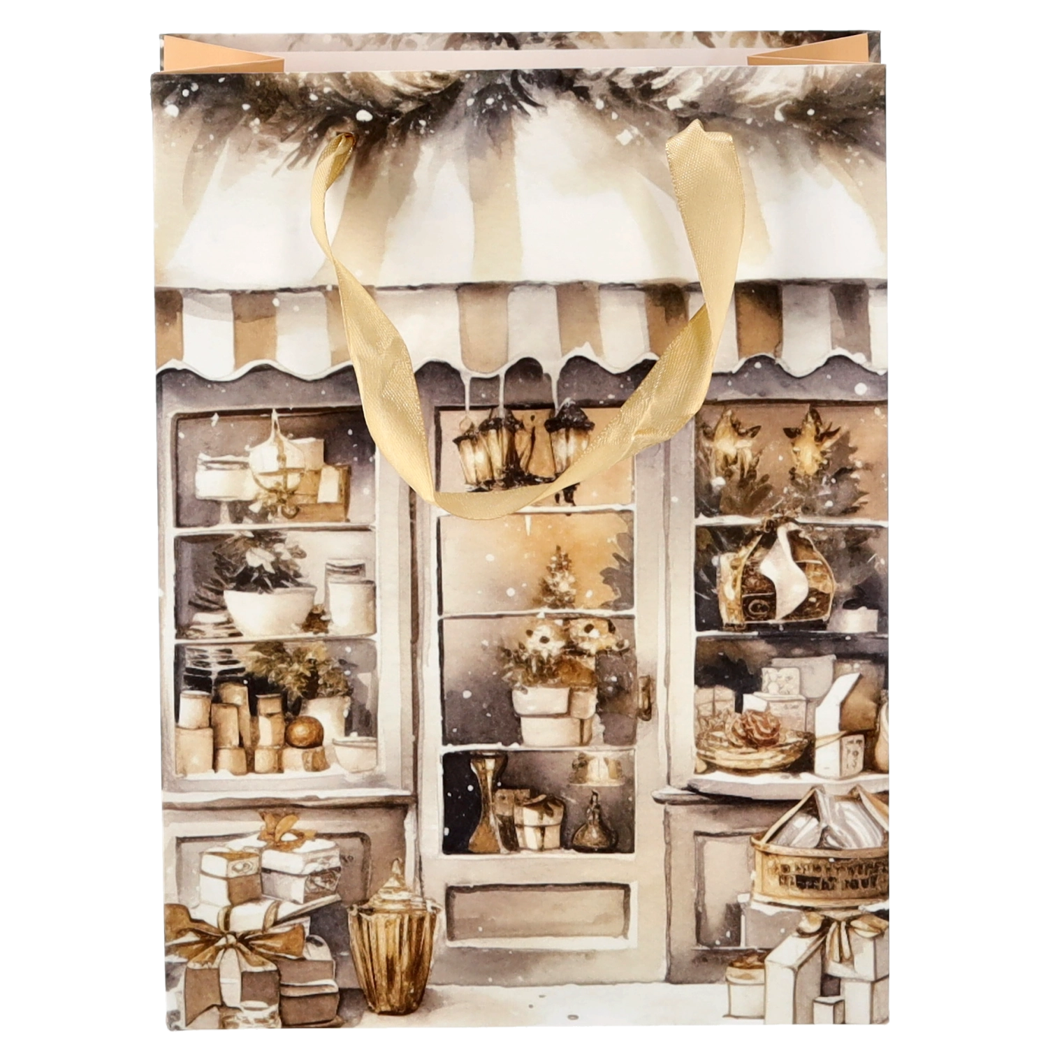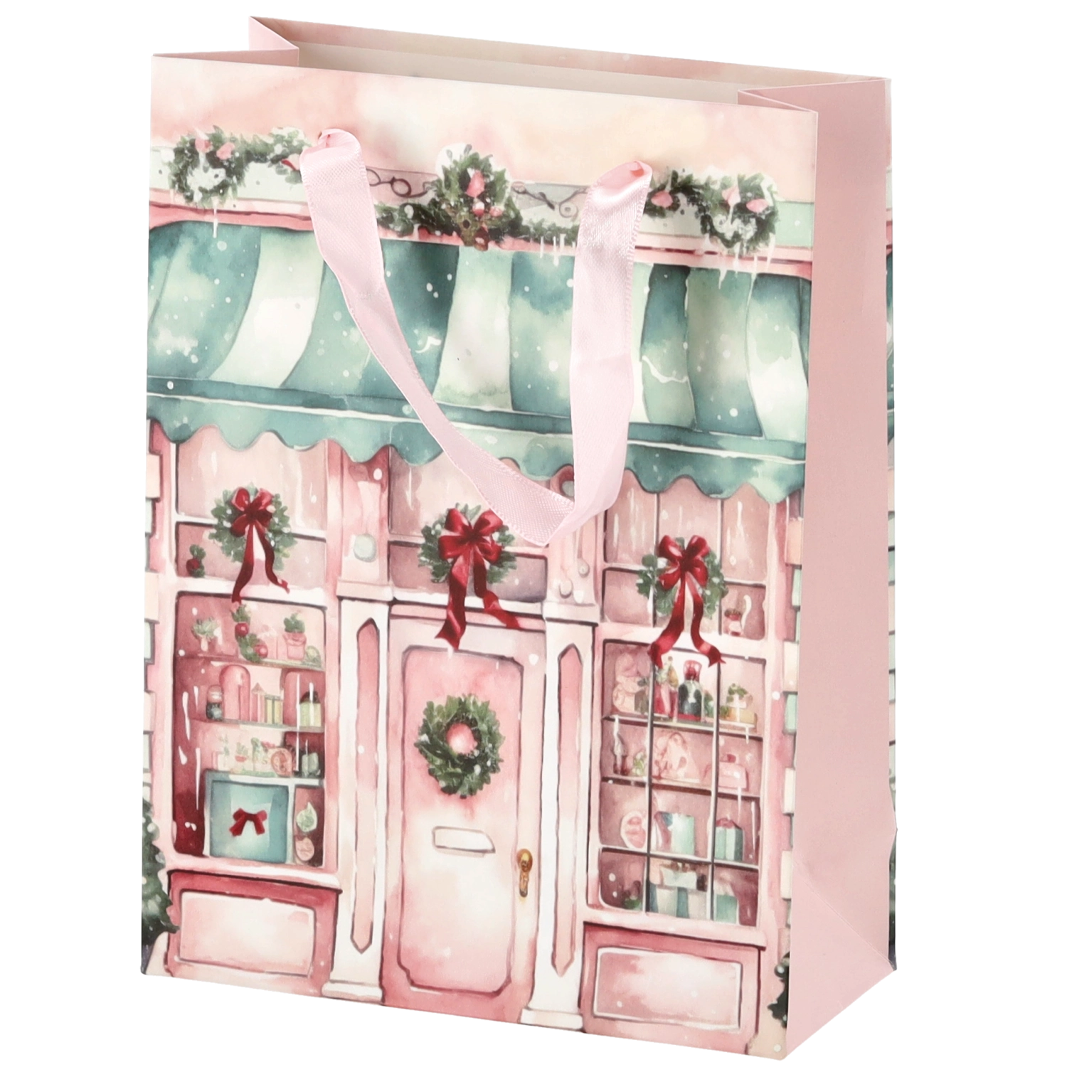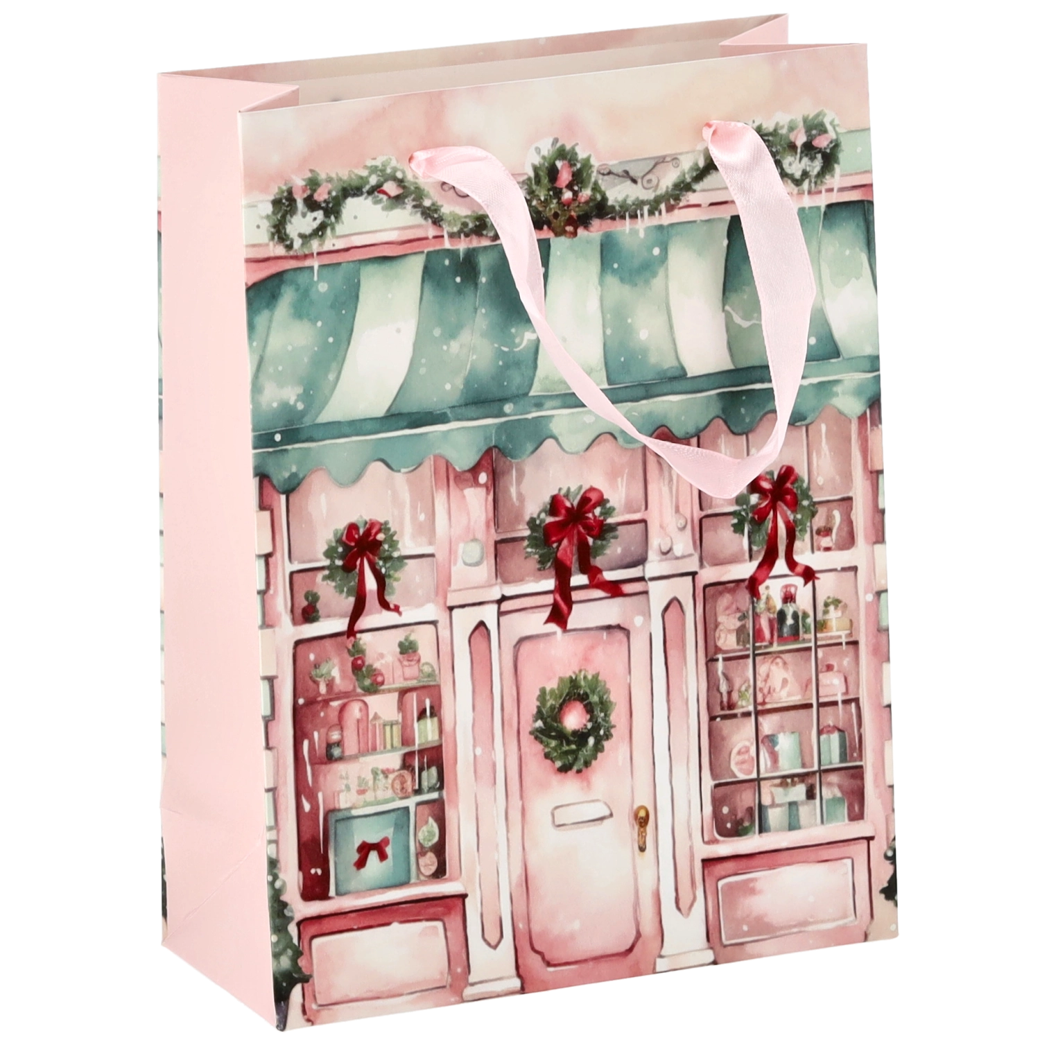 Gør gaveindpakningen til en ren fornøjelse. Denne julepose med et illustreret hus i traditionel stil er et ideelt valg til højtiden. Med kompakte, men rummelige mål rummer den nemt bøger, kosmetik, lys eller mindre gavesæt.
